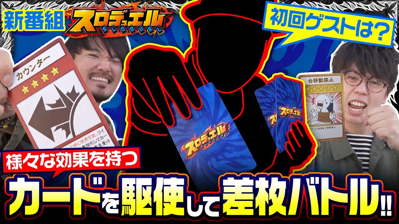 唐突に始まり唐突に終わった迷番組『ボツ企画」から『スロデュエル』が復活!!様々な効果を持つカードを駆使し差枚を競うパチ・スロ型カードゲーム!5000円分のQUOカードの支払いを押し付け合う高度な心理戦もお楽しみに!