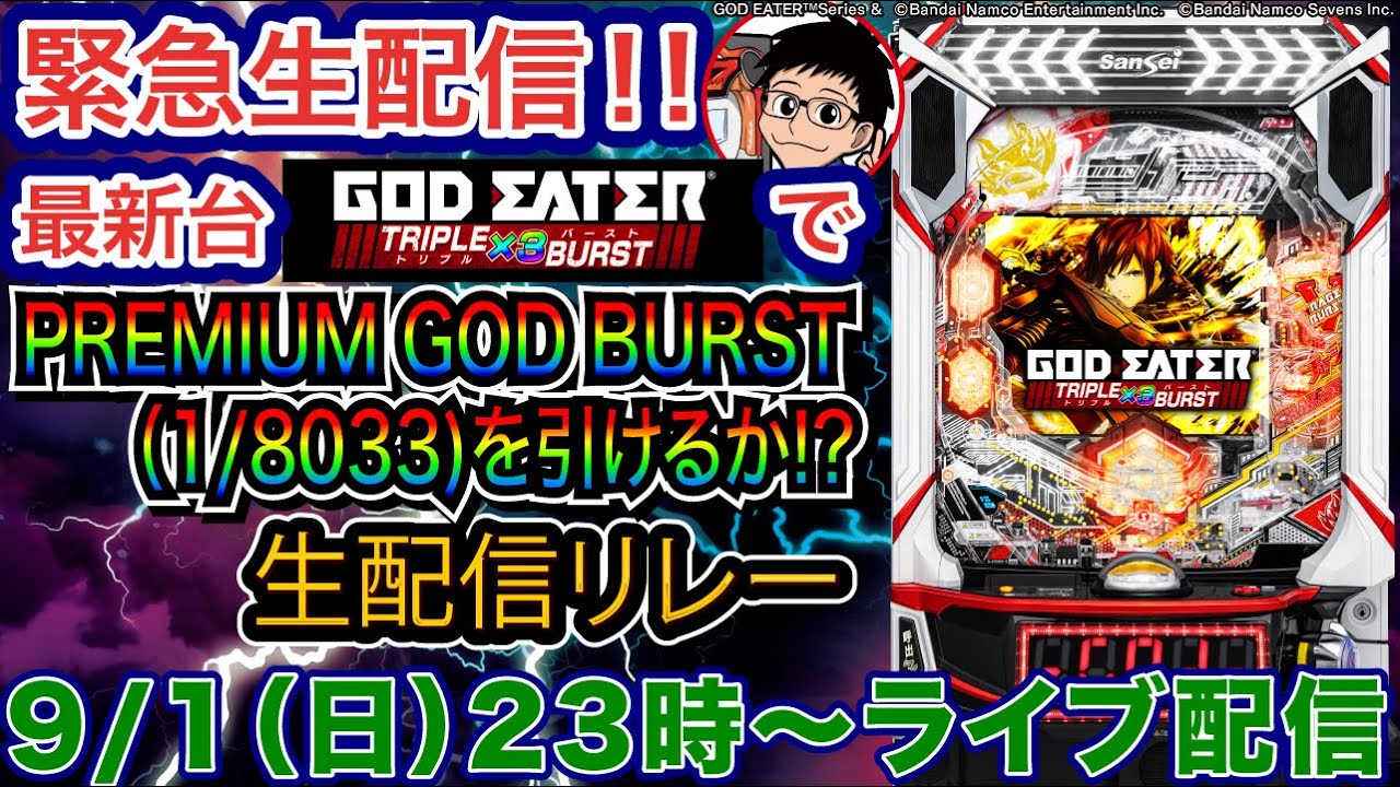 ノッチさん→パチンカスさちおさん→助六さん→ショコラ大佐→せせりくんの順番で約3時間ずつ生配信!目標はRUSHで一番古い振り分けの『PREMIUM GOD BURST(確率約1/8033)』となります。