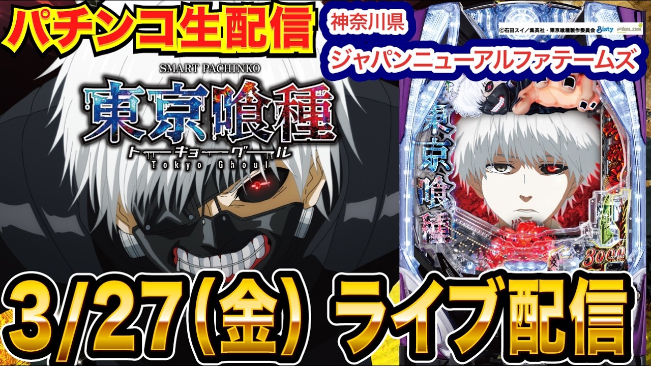 【パチンコ生配信】前半戦 東京喰種で手落ちさせまくる!神奈川県 ジャパンニューアルファテームズで生配信! 良さげな台を実戦予定!!【パチンコライブ】【パチスロライブ】【せせりくん】